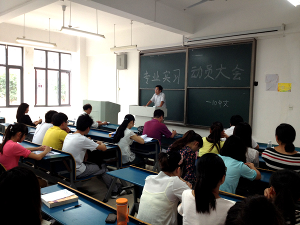 9月9日下午,人文学院2010级汉语言文学专业实习动员会在新知楼A106教室召开。人文学院院长吴贵春、党总支书记兼副院长陈传万、副院长王培章、中文系主任马海祥、副主任陆山花等老师以及中文10级全体学生参加了会议。
