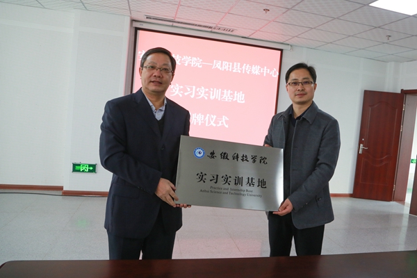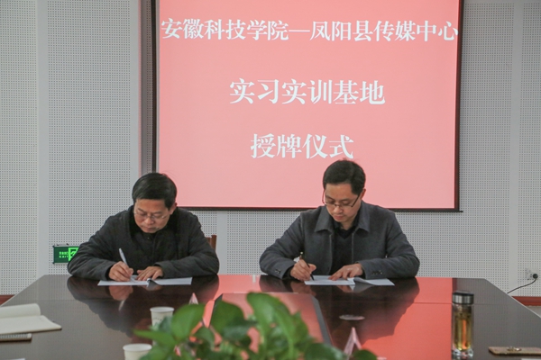 11月21日上午,我校与凤阳县传媒中心实习实训基地授牌仪式在县传媒中心会议室举行。校党委委员、副校长黄远友,校党委委员、宣传(统战)部部长卫胜,人文学院院长陈传万,人文学院副院长李晓东,新闻传播学教研室主任苏兆龙;凤阳县委常委、宣传部长王连侠,凤阳县委宣传部副部长、凤阳传媒中心主任王涛,凤阳传媒中心副主任王娟、徐军参加仪式。仪式由王连侠主持。