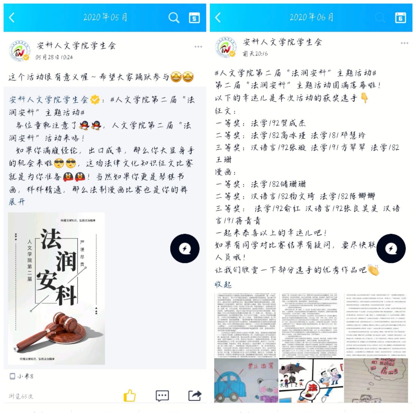 为大力弘扬法治精神,共筑伟大中国梦,人文学院于5月25日开展第二届“法润安科”主题活动,活动持续至6月2日。