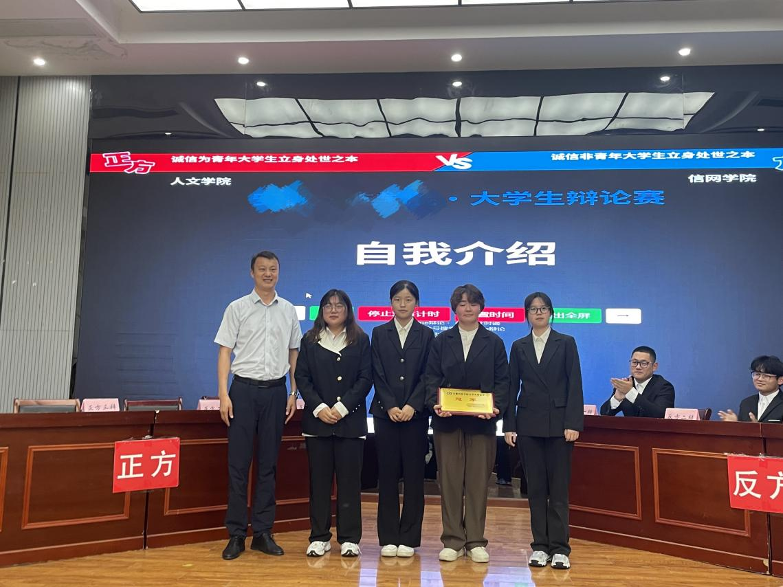 在决赛现场,人文学院辩论队就“诚信为青年大学生立身处世之本”与反方“诚信非青年大学生立身处世之本”展开辩驳。人文学院代表队以青年大学生为即将进入社会的中坚力量,肩负的责任为切入点,论述诚信才能推动青年大学生成长成才,反方认为诚信是基础,能力才能帮助青年大学生更好的进入社会。在自由辩论环节,双方进行激烈的讨论,赢得场内观众连声喝彩。经过层层激烈角逐,最终由人文学院代表队摘得桂冠。