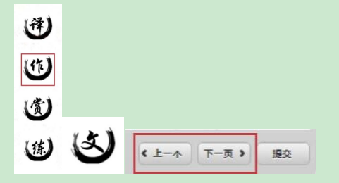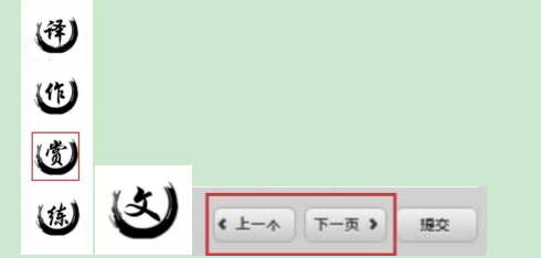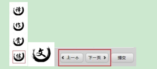 3.练习方法:于横线处填入使用者答案,点击提交按钮进行检测。如答案正确进入下一首诗词练习,反之回到原文加以复习。复习结束可点击界面左侧“练”按钮再重新练习。