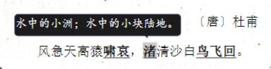 6.诗词赏析:点击界面左侧“赏”按钮。学习结束点击界面左侧“文”按钮或“上一页”返回原文。点击“下一页”继续学习下一首诗词。