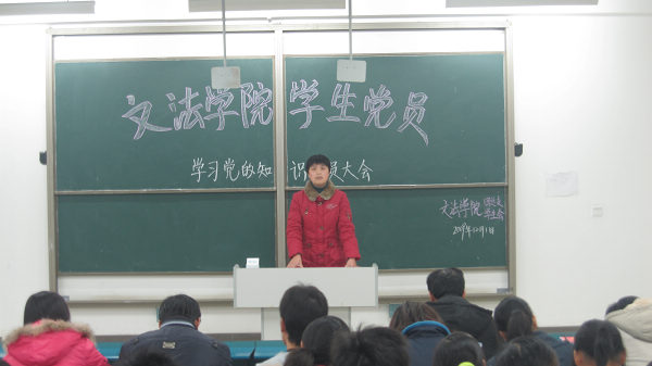 12月1日下午,文法学院在新知楼A202召开学生党员学习党的知识动员大会。文法学院党总支书记王有炜、副书记杜士凤、辅导员黄钦海出席大会,文法学院全体学生党员参加了动员会。会议由李沙娜主持。