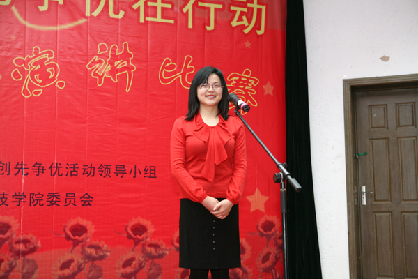 经过各党总支(直属党支部)的选拔和推荐,共有14位教职工和10位学生参加决赛。参赛选手们以亲身的经历、充沛的感情,颂扬了我校在推进科学发展、创建应用型高校、加强党组织先进性建设方面的努力和成效,表达了立足本职创先争优的态度和决心,体现了我校党员学先进、赶先进、求先进的良好风气,共同表达了创建优秀基层党组织,争做优秀共产党员的坚定信念。