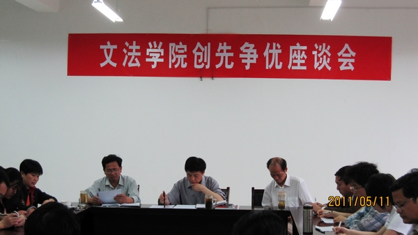 5月11日下午,校党委副书记蒋德勤出席文法学院创先争优工作座谈会, 文法学院全体教工党员、思想政治理论课全体教师、3个学生党支部党员代表参加会议,座谈会由党总支书记王有炜主持。