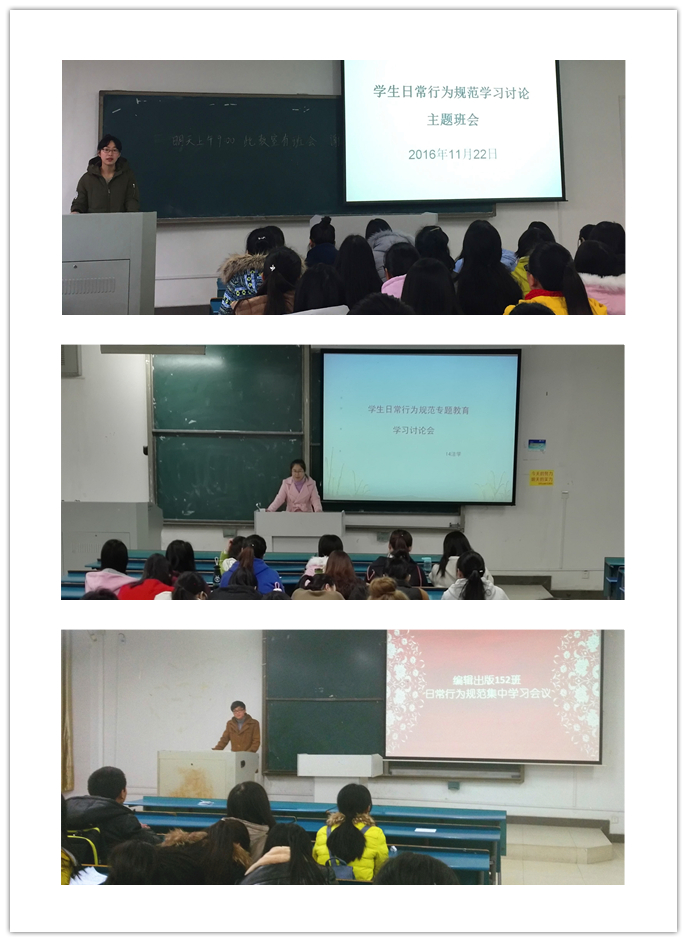 各班级在学习讨论过程中,由班委带头主动开展批评与自我批评。针对大家在日常生活学习中的人际交往、教学活动、考风考纪以及在教室、图书馆、实验室、宿舍和网络等一些公共场合存在的不文明、不规范行为进行认真剖析并提出整改措施。2016级部分班级通过公开演讲形式进行日常行为规范的学习和讨论,全体同学逐一上台进行自查自纠,提出整改措施和时间要求,并表达了规范日常行为的决心。
