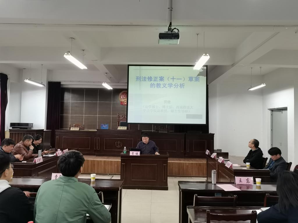 法治讲坛以“刑法修正案(十一)多维度透视”为主题。项婷婷、贾健分别从“刑法解释与刑法修改理性的冲突与消解”和“刑法修正案(十一)草案的教义学分析”两个维度进行了阐释。他们将鲜明具体的案例与法律条例相结合,从不同角度,系统讨论了刑法修正案(十一)的热点问题,并与师生进行了现场互动交流。与谈人骆绪刚、张晓云也分享了各自的观点,同主讲人共同探讨相关法律条文的制定与执行等问题。