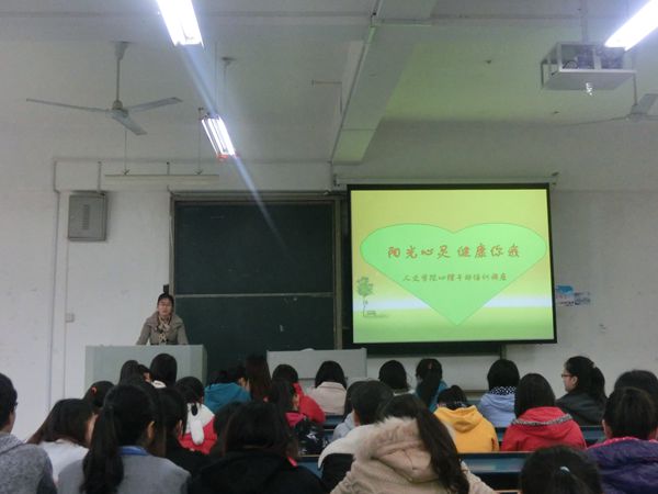 3月19日下午,人文学院在新知楼A102举办了题为“阳光心灵、健康你我”的心理干部培训讲座。讲座由心理辅导老师、国家三级心理咨询师李沙娜担任主讲。各班级心理委员、宿舍心理健康宣传员近80人聆听了讲座。