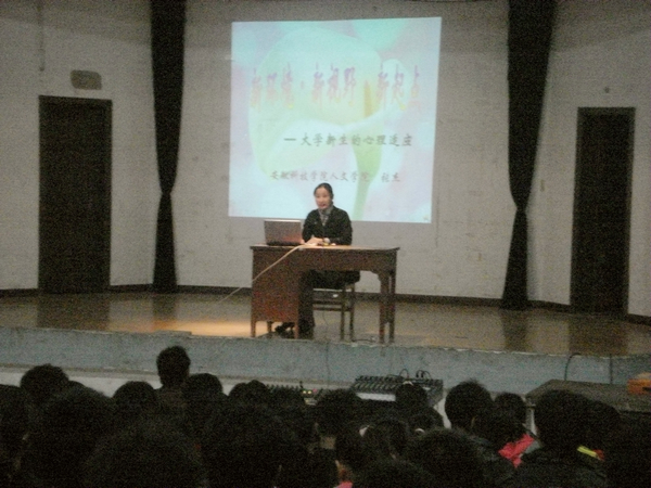 10月26日晚,按照2011届新生入学教育计划安排,人文学院在学术报告厅举办“大学新生心理适应”讲座。讲座由国家二级心理咨询师张杰老师担任主讲。人文学院党总支副书记杜士凤出席并和全体11级新生聆听了讲座。