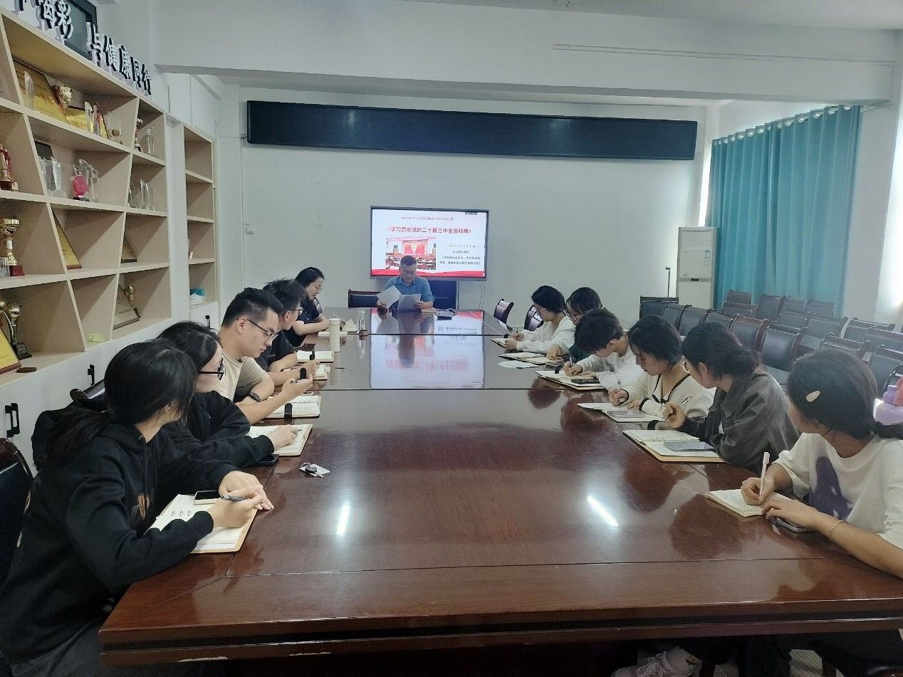 党的二十届三中全会是在以中国式现代化全面推进强国建设、民族复兴伟业的关键时期召开的一次十分重要的会议。全会取得的重要成果、作出的重大部署,对于动员全党全军全国各族人民团结奋斗、锐意进取,以进一步全面深化改革开辟中国式现代化广阔前景,具有重大意义。宣讲会上,王传林领学了习近平总书记在党的二十届三中全会上的重要讲话精神,介绍了党的二十届三中全会的会议概况、主要议程、主要内容等,并从坚定理想信念、勤于学习、勇于实践、敢于创新等方面娓娓道来,教育引导学生党员并通过他们教育影响广大团员青年踔厉奋发勇毅前行,在以中国式现代化全面推进强国建设、民族复兴伟业的伟大征程中贡献青春力量。