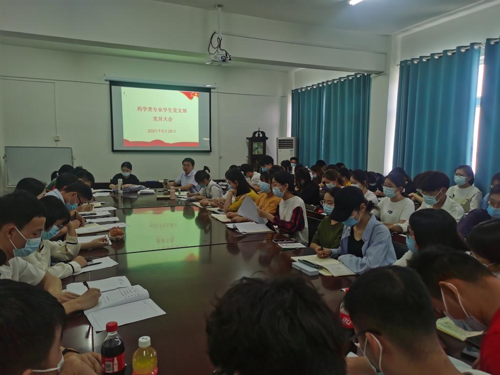 为扎实做好党员发展工作,5月28日下午,药学类专业学生党支部于学院会议室召开党员大会,支部全体党员及此次发展对象参加会议,会议由党支部书记姜毅主持。