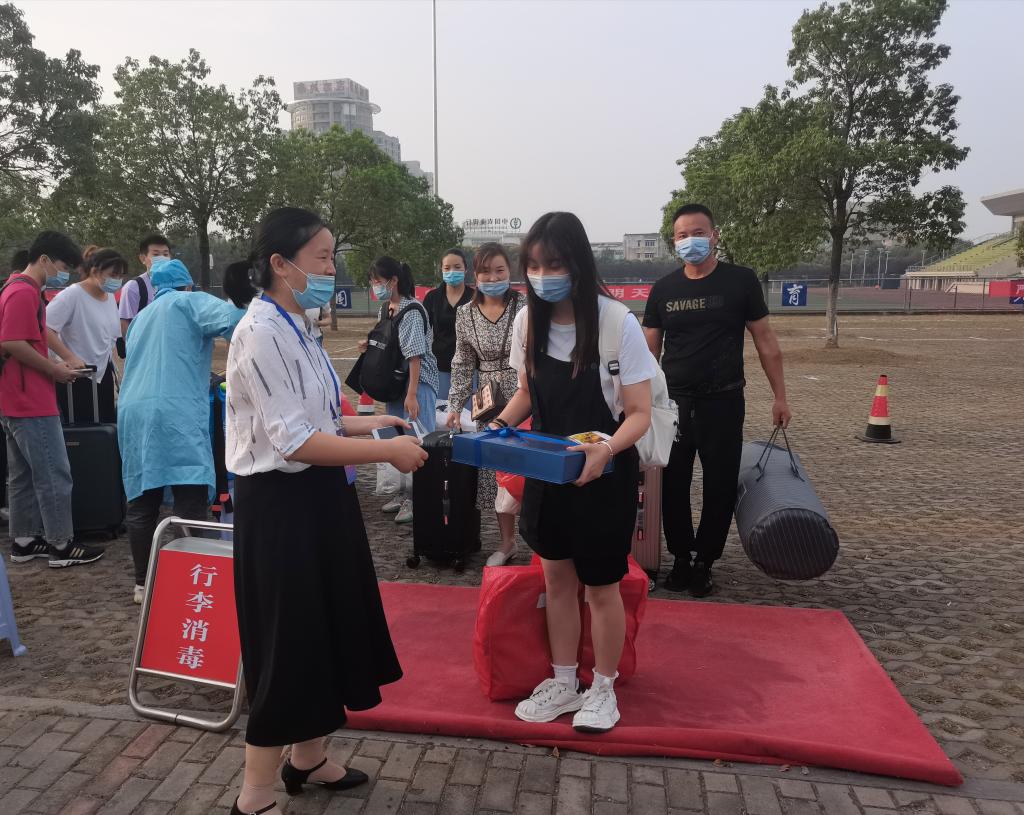 9月15日上午七点,在众人翘首以待的目光下,21级药物制剂专业录取的高思佳第一个走入校门。作为最早到来的新同学,学院党委副书记彭丽萍亲自为她颁发入校礼品,引导着她前来报到。笔者采访时了解到,高思佳是一名时间观念很强的女生,因为家离学校很远,她便与父母提前一天出发,为今天的报到入学做足了充分准备。“作为第一名入校的新生,收到大礼包我真的非常惊喜,也对未来的校园生活充满期待。自己也将会在安科继续努力,完成自己的考研梦想。”高思佳满怀信心的说道。
