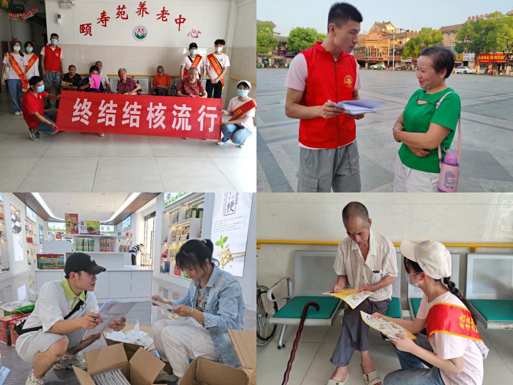 肺结核病是法定传染病中的乙类传染病,主要通过呼吸道传播,该病在全球广泛流行,严重危害着广大人民群众的身体健康。实践过程中,团队成员分别前往凤阳县鼓楼街道和颐寿院养老中心开展结核病防治宣传活动,通过分发“结核病的危害”、“结核病的传播途径”、“如何预防结核病”等宣传材料向当地居民介绍关于防治结核病的相关知识,并对居民群众关心的话题进行了耐心、细致的解答。宣传材料中详细的图片、数据等内容直观地强调了预防结核病的重要性,有助于增强人们的防病意识和自我保护能力,加强个人对防控形势的关注,遏制疾病流行与蔓延。活动现场气氛热烈,营造了浓厚的结核病防控氛围,激发了广大居民的参与热情,收到了良好的宣传效果。宣传活动期间,团队成员也为颐寿院养老中心的老人送去温暖,为他们修剪头发,和老人们拉家常,询问他们的健康、生活、饮食等方面情况,弥补老年人日常生活照料和精神慰藉的缺口。为扩大疾病预防知识的覆盖面,团队成员在各自家乡也相应开展“结核病防治”相关知识宣传,为全社会提高结核病防治知识知晓率、终结结核病做出贡献。