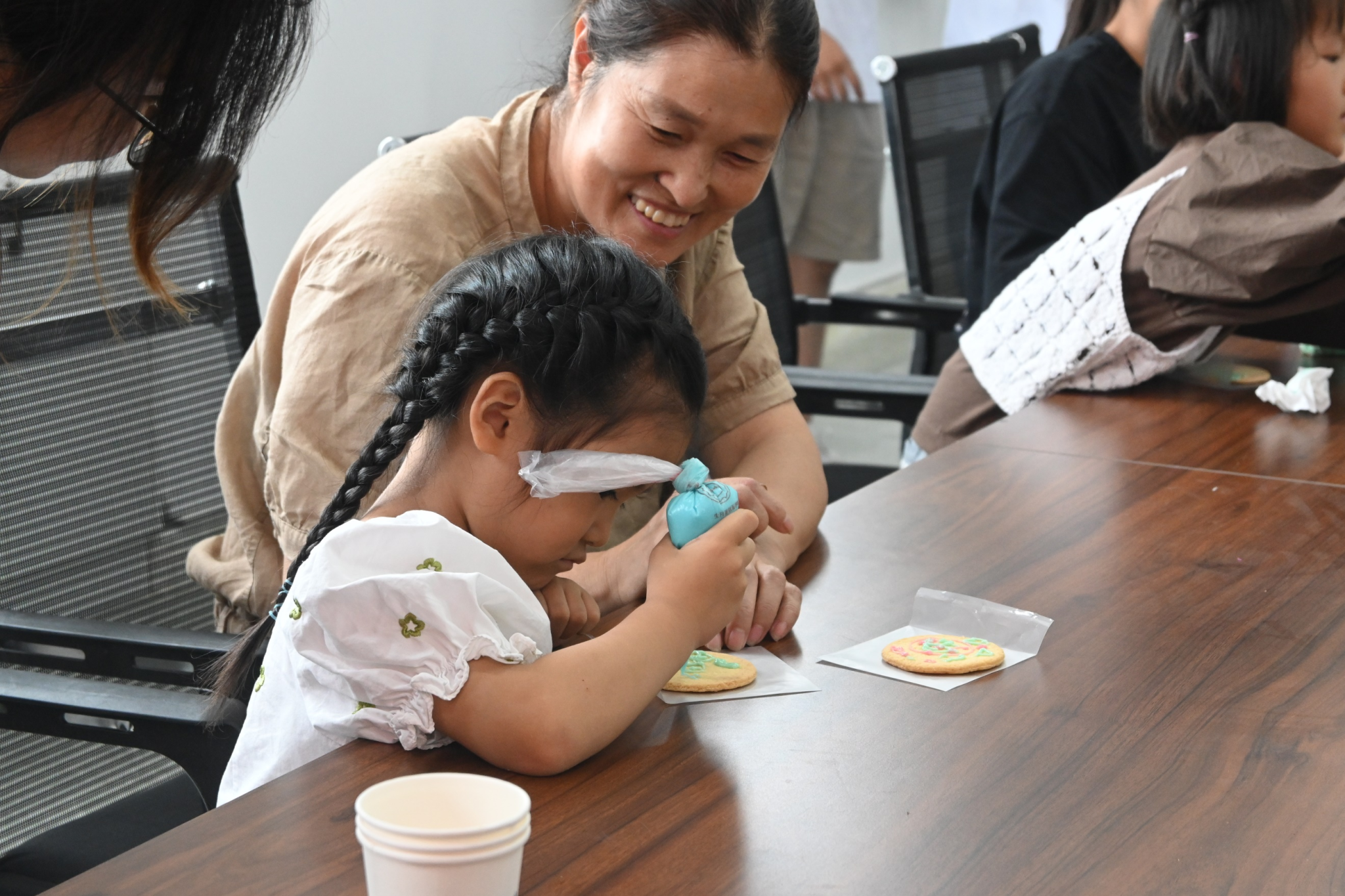 在镇活动中心,团队精心策划的糖霜饼干制作活动为当地的留守儿童带来了一场充满欢乐与创意的甜蜜盛宴。活动现场,团队成员们化身成为“甜蜜老师”,耐心细致地指导孩子们在饼干上点缀五彩斑斓的糖霜。孩子们在动手实践的过程中,不仅学会了制作糖霜饼干的技巧,更享受到了创作的乐趣和成功的喜悦。欢声笑语中,一块块独一无二的糖霜饼干在孩子们的手中诞生,它们不仅色彩鲜艳、形状各异,更承载着孩子们对美好生活的向往和期待。