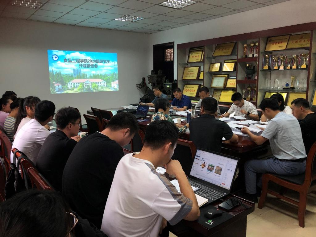 开题作为研究生培养的关键环节,对研究生日后的科研训练起着至关重要的作用。6月26日,在食品工程学院会议室举行2020级食品加工与安全领域研究生开题报告会。本次报告会专家组由安徽农业大学杜先锋教授、丰原集团余诗庆高级工程师、博业体育(中国)官方网站-登录入口食品工程学院李景军研究员、翟立公副教授、杨剑婷副教授、丁志刚副教授、郑海波副教授组成,杜先锋教授担任组长并主持本次报告会。学院部分研究生导师和全体研究生参加了会议,校教学督导刘爱荣教授现场指导,学院院长杜传来教授亲自监督,并全程参与开题报告会。