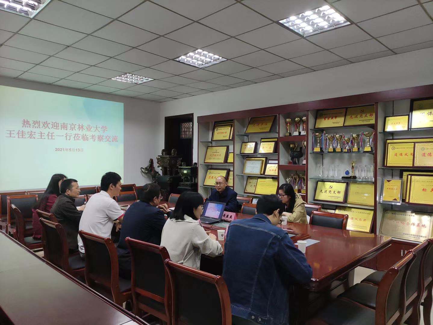 王佳宏对学院热情周到的接待表示衷心感谢,围绕人才培养、专业定位、就业方向以及党建工作等问题介绍了南京林业大学的基本情况。
