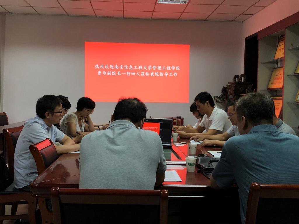 座谈会上,首先杜传来简要介绍了食品工程学院的基本情况,着重介绍我院专业建设、团队建设、科研方向以及校企合作等方面的工作,并就两院在食品冷链物流与应急供应方面合作共建研究院表达了良好的愿望,同时在合作前景、合作基础、合作内容等方面阐述了自己的观点。接着,曹玲介绍了南信大管理工程学院的专业布局、师资队伍、学科方向和科研成果等基本情况,并对我院人才培养、校企合作给予高度赞扬,对双方的资源互补和合作诚意给予了充分的肯定。随后,双方人员就“长三角食品冷链与应急技术研究院”的建设思路、组织架构、人员组成、合作内容和发展目标以及两院科研合作与师资交流等方面进行了广泛的研讨和交流。最后,付光玺对此次洽谈交流取得的成果与共识表示祝贺,希望双方加快推进合作,争取早日将研究院建设为省级科研平台。(特约通讯员:时韩荣 审核:杜传来)