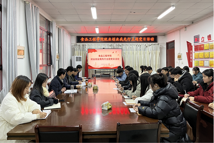 为深入学习贯彻习近平总书记关于高校毕业生就业创业工作的重要指示批示精神,落实就业优先战略,引导毕业生党员树立正确的成才观、职业观、就业观,12月14日下午,食品工程学院党委开展了就业创业我先行主题党日活动。学院党委书记付光玺出席活动并指导讲话。活动由学院党委副书记王广良主持。
