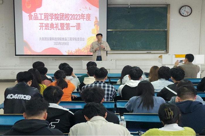 为充分发挥共青团在学生思想政治工作中的主力军作用,改革创新共青团工作、切实增强思想政治引领实效,3月8日下午,食品工程学院在新知楼B304举行了团校2023年度开班典礼。学院党委书记付光玺出席典礼并讲授第一课。党委副书记、纪委书记王广良,分团委书记赵传磊,全体团干参会。会议由分团委副书记吴玘主持。