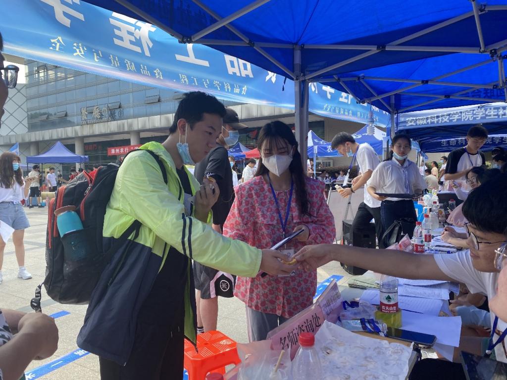 在新生接待点处,学院食为天协会为此次迎新特别制作了蛋挞点心,并请新生一一品尝,新生们对美味的蛋挞和学长们的热情服务赞不绝口。