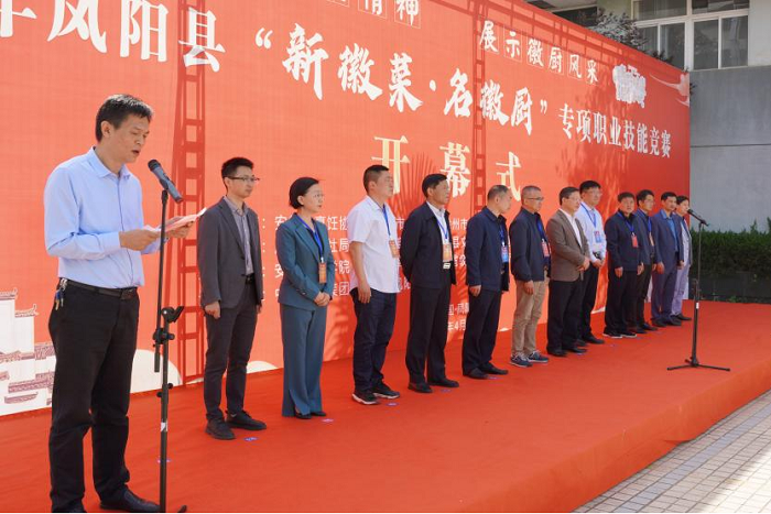 程洪全代表凤阳县致开幕辞。他指出,此次专项技能大赛全面拉开了凤阳县“新徽菜·名徽厨”(皖中菜肴)专项行动的帷幕,他谨代表凤阳县委、县政府和大赛组委会,向学校各位领导的大力支持表示衷心感谢,并向全体参赛选手和裁判员表示亲切的问候。他表示,2022年以来,省、市、县各级党委、政府重点实施10项暖民心行动,“新徽菜·名徽厨”(皖中菜肴)专项行动作为“暖民心”行动中的重要一项,充分体现了各级党委、政府始终把民生实事放在心上、抓在手里、落实在行动上。他强调,希望各位参赛选手充分发挥聪明才智,沉着应对每项赛程,以良好的心理素质、饱满的精神风貌、超高的技能水平赛出风格、赛出水平,取得好成绩。