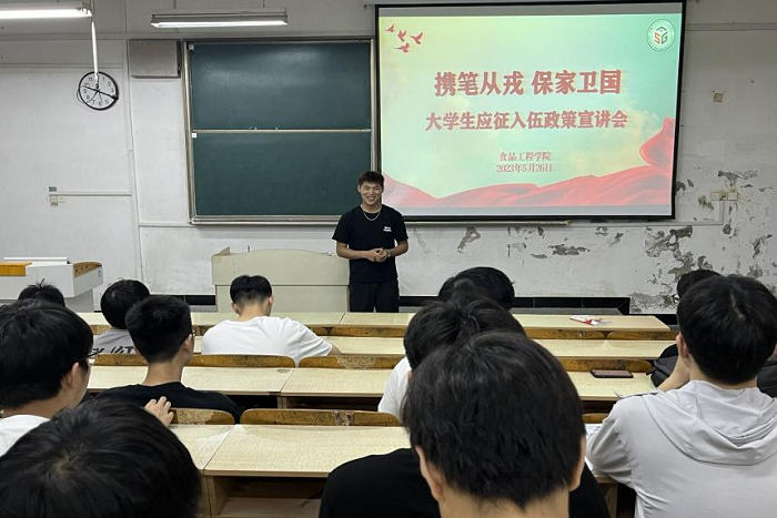 为进一步加大应征入伍政策宣传力度,激励更多学生参军报国,5月22日至28日,食品工程学院开展了以“携笔从戎,绽放青春”为主题的应征入伍政策宣传周系列活动。