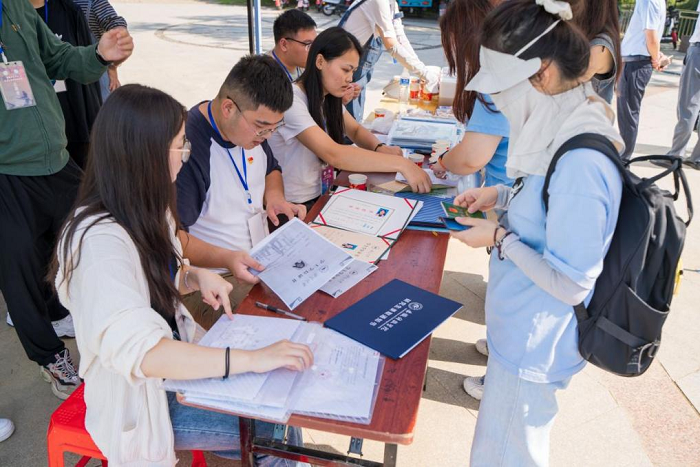 在迎新过程中,志愿者们认真落实规定的核验内容和要点,发放专属礼包,让新生们有条不紊地办理入学手续。同时邀请新生品尝黄油饼干、曲奇饼干、特色饮品,引导新生在新生照片墙上签名并观看研究生科学研究、创新创业、优秀毕业生典型事迹等方面的宣传展板。