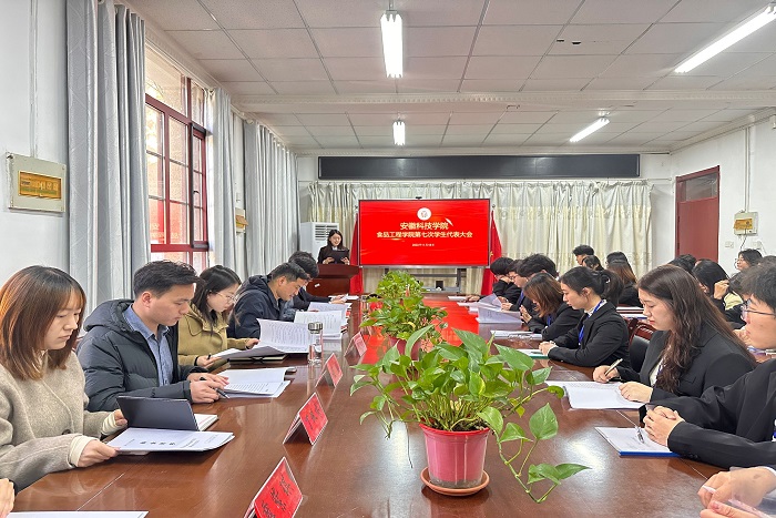 11月18日下午,食品工程学院第七次学生代表大会在东办公楼会议室顺利召开。学院党委副书记王广良、全体辅导员及学生代表参会。会议由第六届学生会主席团成员朱佳佳主持。