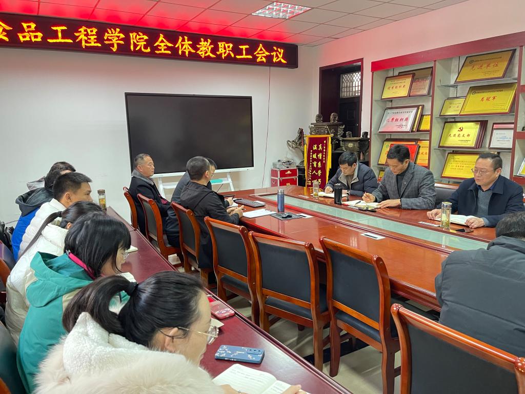 11月27日下午,食品工程学院在东办公楼104会议室,召开全体教职工会议,就近期重点工作做进一步强调部署,会议由院长杜传来主持。
