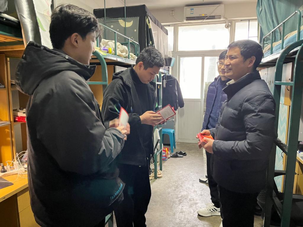 线下由各班主任深入毕业班学生宿舍,开展爱国主义教育,介绍中国人民军队的优良传统,引导同学们更加深入地理解习近平强军思想对国防和军队建设的意义,向同学们详细解读了学费补偿、助学贷款代偿、退役学生学费减免政策以及退役复学学生课程免修、转专业、创新创业、毕业设计和论文答辩等方面的优抚优待政策和相关激励政策。并勉励同学们要坚定从军信心、提高思想觉悟、增强身体素质、做好入伍准备、努力报效祖国。