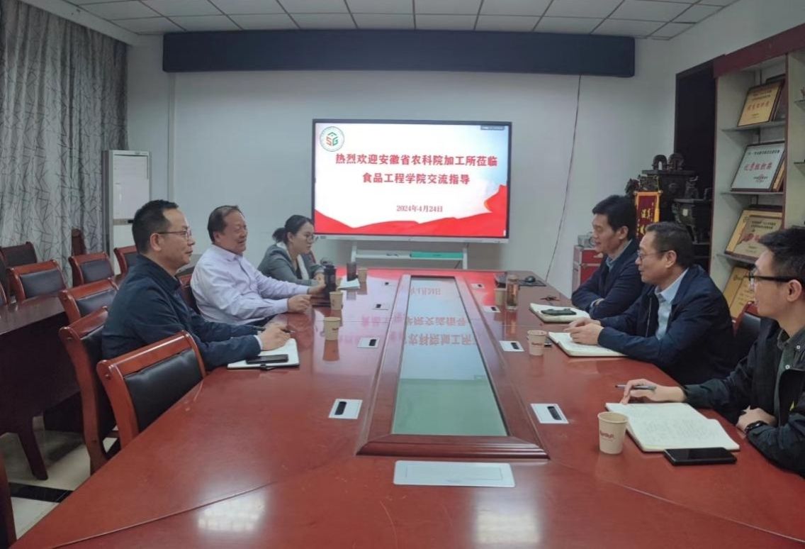 4月24日下午,安徽省农科院农产品加工研究所钱坤研究员、程江华研究员和徐雅芫副研究员一行莅临博业体育(中国)官方网站-登录入口食品工程学院交流指导。食品工程学院书记付光玺等对安徽省农科院农产品加工研究所表示热烈欢迎,并在东办公楼学院会议室顺利开展产学研交流会。此次交流会旨在推动双方在大豆加工与副产物综合利用领域进一步开展项目合作、科技成果的转化、人才培养等工作。