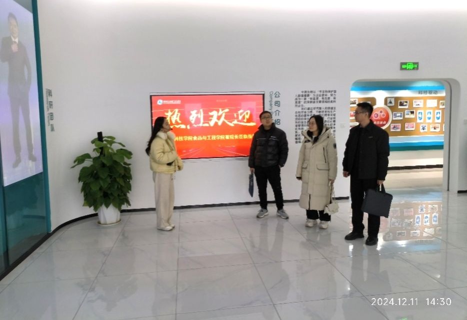 12月11日,受安徽中微微元生物科技有限公司邀请,食品科学与工程学院副院长翟立公、食品安全系青年博士孟静南与赵金龙一行3人前往中微微元生物科技有限公司参加校企合作产学研合作交流。