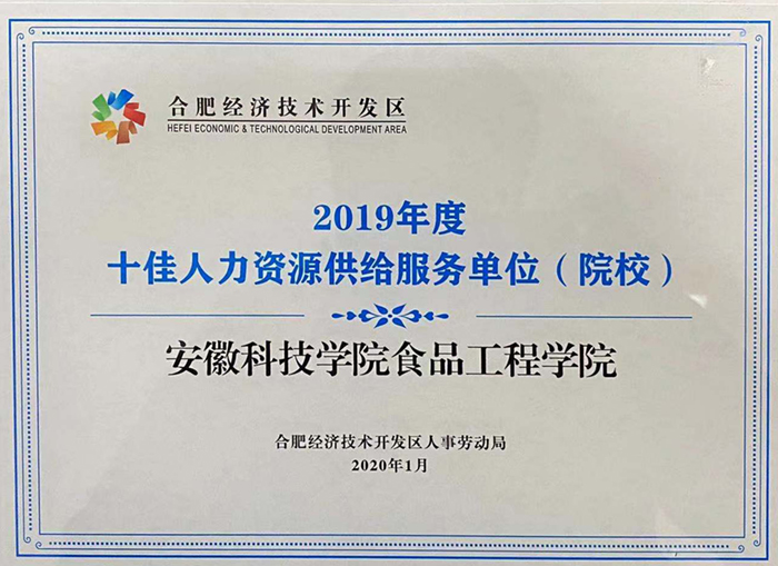 食品工程学院荣获合肥经开区十佳人力资源供给服务单位