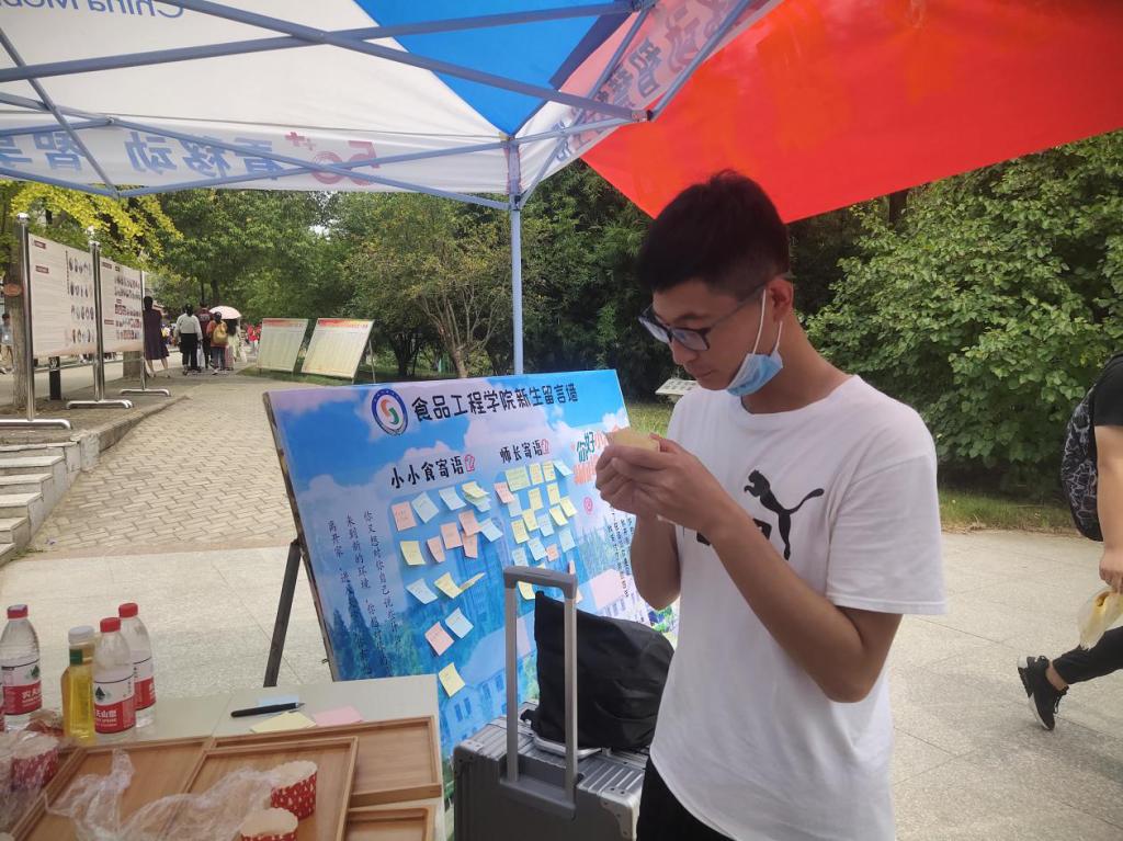 在师长与新生寄语墙上,“迈开坚定的步伐,走向既定的目标”、“明天是你们的世界,一切因你们而光辉”、祝愿你们在食品工程学院度过幸福成功的四年时光”......一句句微暖体贴的话,体现了学院老师和学长对新生的关怀和期望。“前程似锦,不负韶华”、“来日方长,一直努力下去”、“希望大学四年一直努力下去,不辜负自己,不辜负家人”......一句句朝气蓬勃的话,抒发了食品工程学院新生们对自己大学的期待与憧憬。