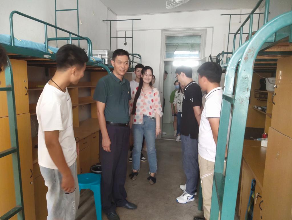 走进新生宿舍,付光玺详细询问了新生们对生活环境的适应情况,并嘱咐新生们要注意宿舍卫生和安全,营造一个良好的住宿环境。在与新生的交谈过程中,老师们的和蔼可亲感染着身边每一个人。同学们也热情迎接,积极响应,寝室里洋溢着师生间的融融情谊。一句亲切的问候“同学们,老师来看看大家”,话语带着春风化雨的力量,化去了同学们的紧张,添了几分真诚的笑容,极大的促进了师生之间的感情交流。