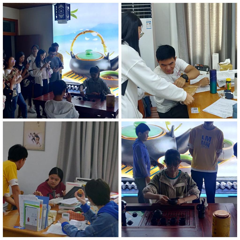 “卧枝开野菊,残枿出秋茶”,在等待月饼出锅的间隙,在茶艺社负责人的带领下,新生前往食品工程学院茶艺室,观赏了茶艺社郑如星的茶艺表演,部分新生磨拳接踵,亲自进行了茶艺体验,享受了一番静谧而新奇的时光。