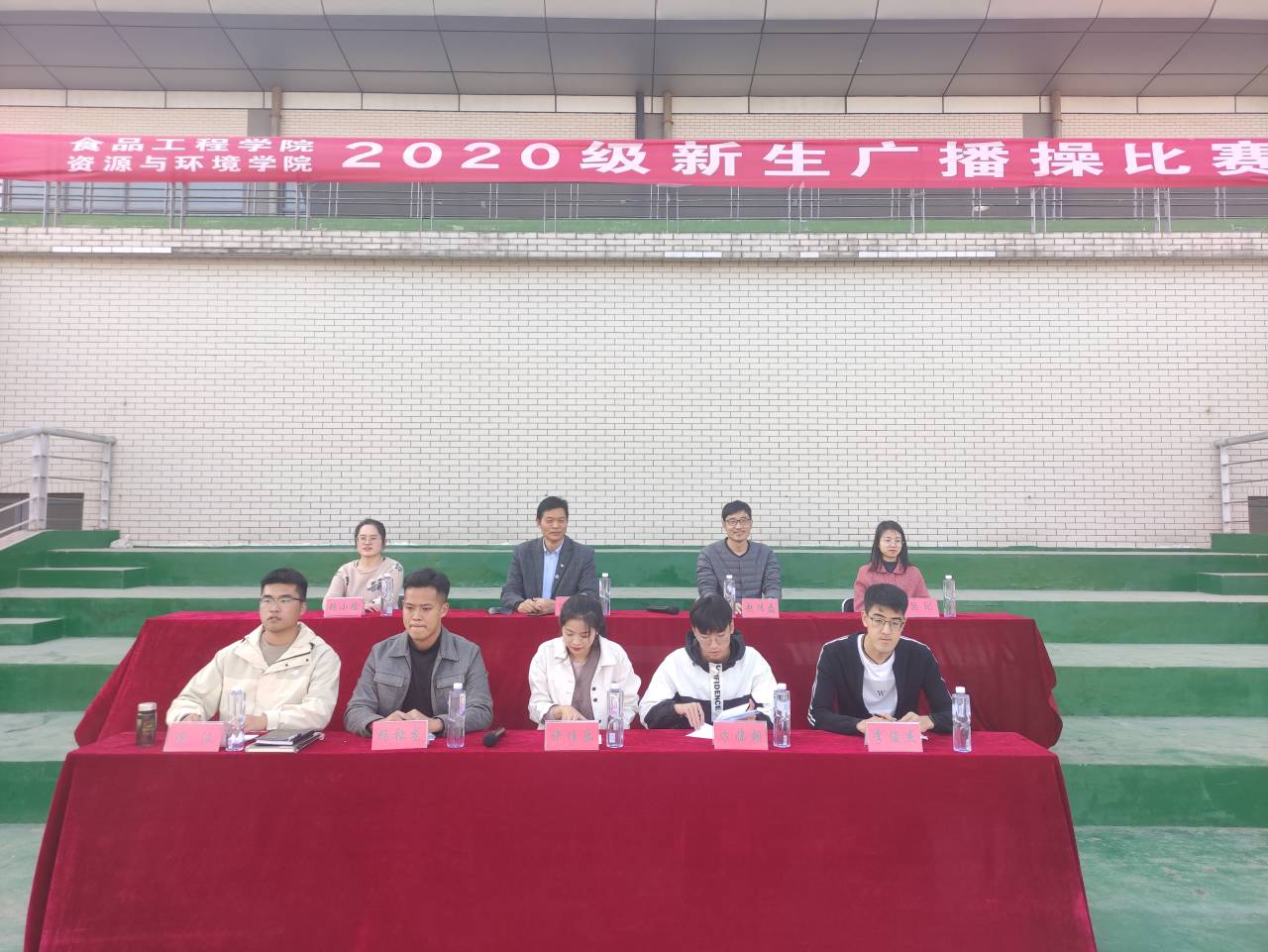 为进一步丰富校园文化生活,增强大学生身体素质。11月14日,食品工程学院联合资源与环境学院在西区田径场举办2020级新生广播操比赛。食品工程学院党总支书记付光玺,食品工程学院党总支秘书赵传磊,资源与环境学院辅导员杨小晗,食品工程学院辅导员吴玘现场观看了比赛。本次广播操比赛两院共计16支班级队伍参加比赛。
