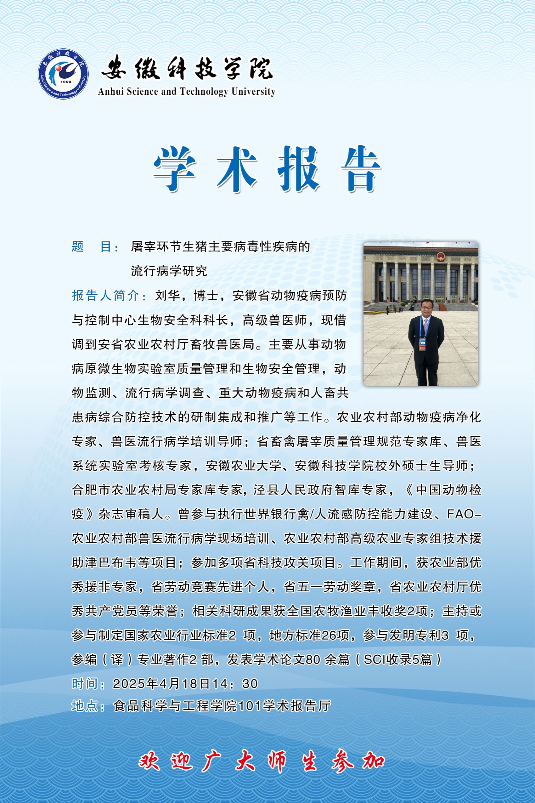 学术报告——刘华:屠宰环节生猪主要病毒性疾病的流行病学研究
