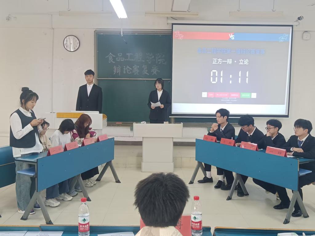 群雄舌战展雄风,争锋相对辩天下。为提高食品工程学院学子的语言思辨能力,丰富大学生活,4月2日下午,食品工程学院团委在新知楼B203举办了辩论赛复赛。比赛邀请学院学生会五届一任主席团成员宋继博,分团委书记助理吴芹、查志超、刘国盟担任评委。