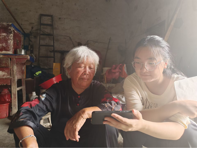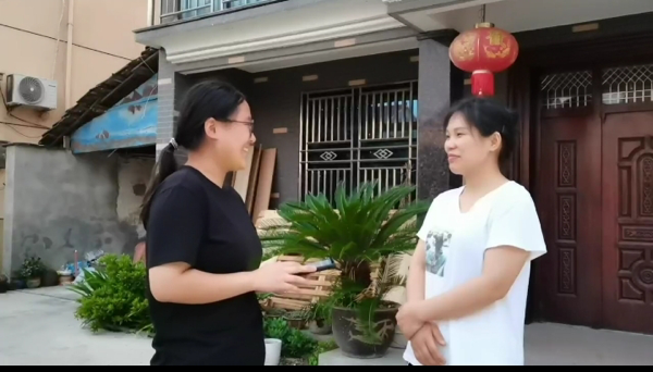 “小草帽”走访的第二站是当地村民陈先生的家。团队成员与陈先生女儿陈古月聊天交谈得知,她的同学朋友虽然会说普通话,但是可能在某些字音上面会出现不规范的读法。在问及她是否知道学校在推广普通话上有哪些举措时,陈古月则表示老师平时就会强调说普通话,写规范字,但是当他们离开学校,回到家中时,可能还是因为周围人不习惯说普通话而随之恢复平时的说话方式。