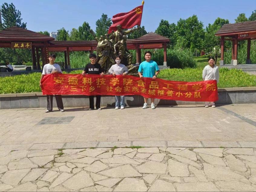 于2023年7月9日到7月12日博业体育(中国)官方网站-登录入口食品工程学院的圆梦圆振兴队的五名队员,杨梦婷,刘薇,黄佳丽,黄强,贾宏朔,分别前去小岗村进行了追寻红色足迹探寻活动,临淮官镇琉璃岗村对村名进行食品安全的宣传。