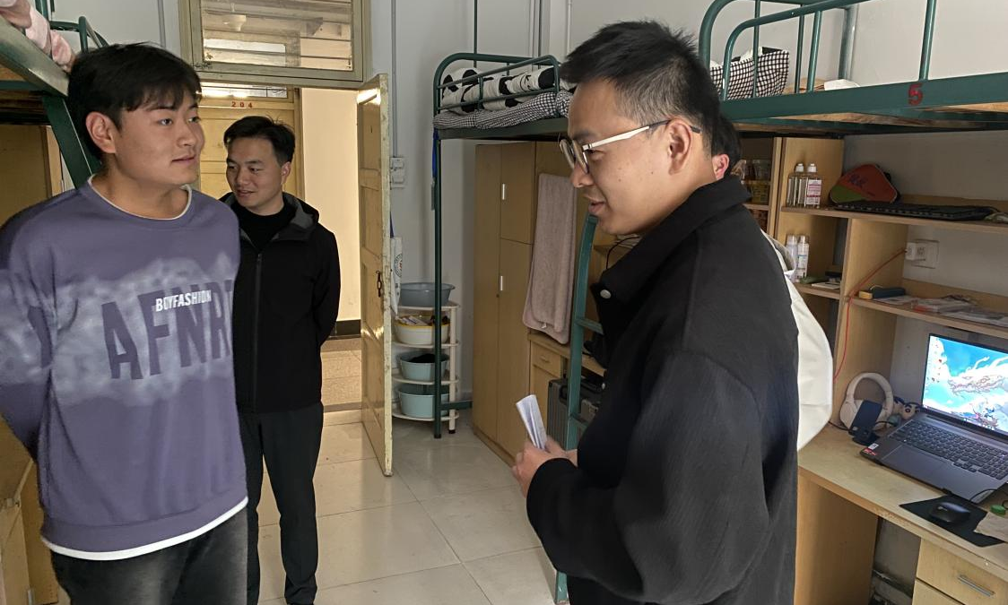 该系列活动针对学院所有新生展开,采取宿舍暖心大走访与心理健康委员培训两种方式实施。在宿舍暖心大走访活动中,学院党政办主任赵传磊、辅导员程韬、曹子健深入学生宿舍,阐述学校政策内容,回应新生疑问,并提出发展性建议;同时,根据个人在校经历,向学生分享适应学校生活与学习的经验。