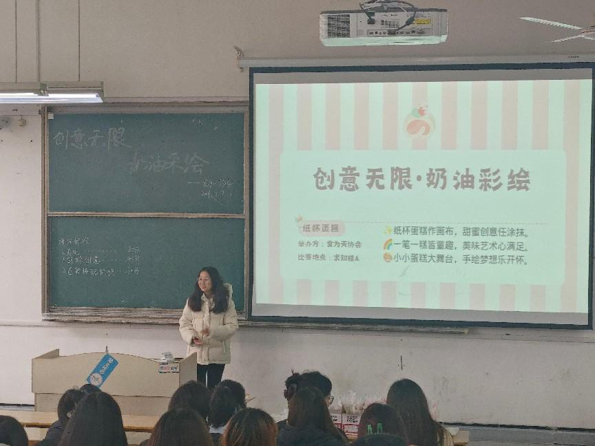 12月7日,食为天协会在求知楼A206教室举办了一场别开生面的蛋糕彩绘活动,吸引了众多爱好美食的同学参与。