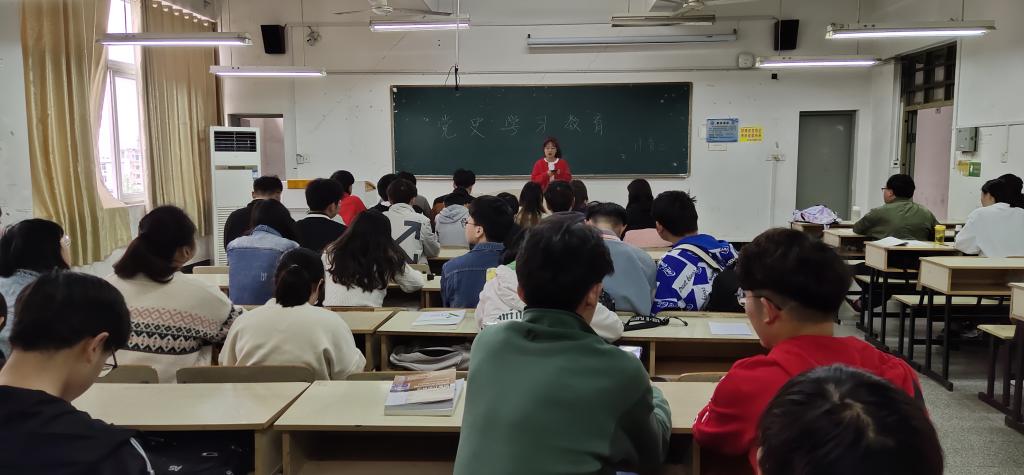 活动开始,李霞带领全体学生观看了有关党史知识的视频,随后,李霞通过PPT向同学们讲述了党的伟大历史和英雄故事,号召同学们学党史,知党恩,跟党走。