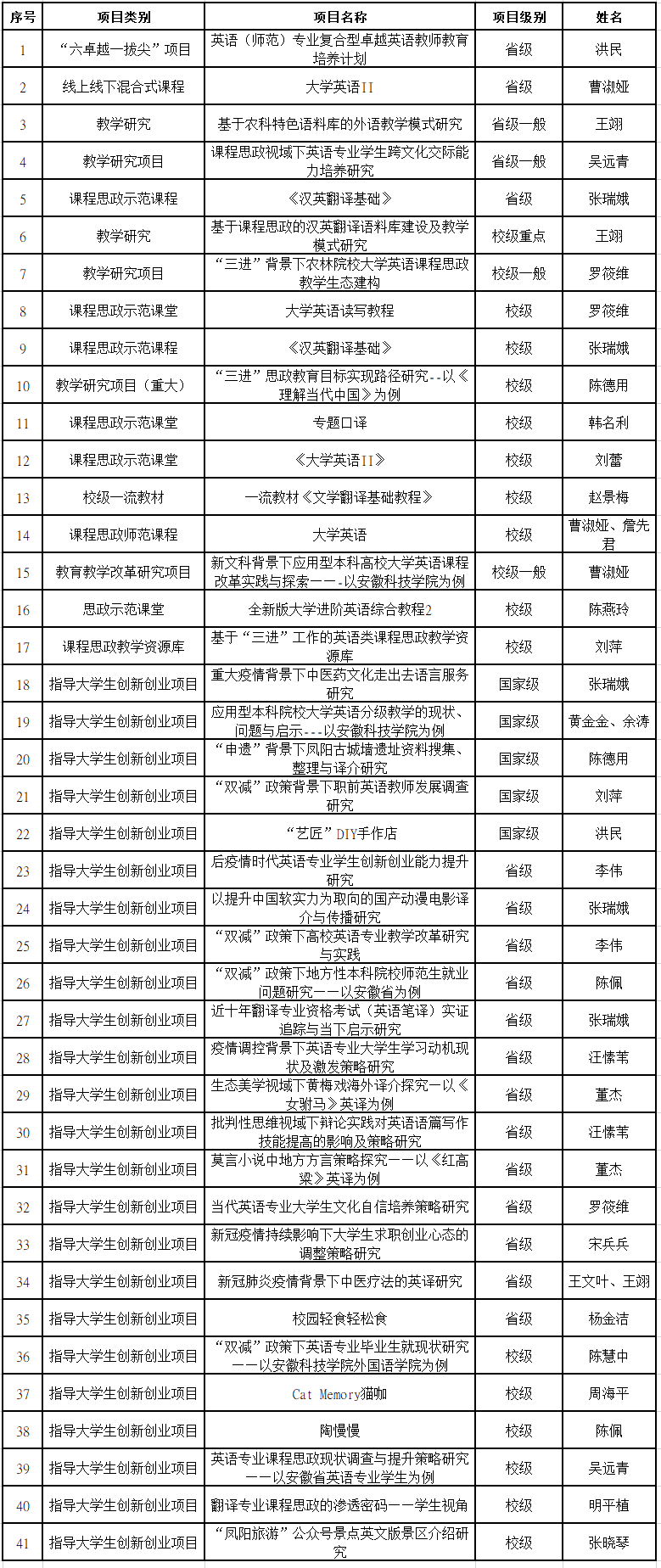 2022年外国语学院教研成果统计