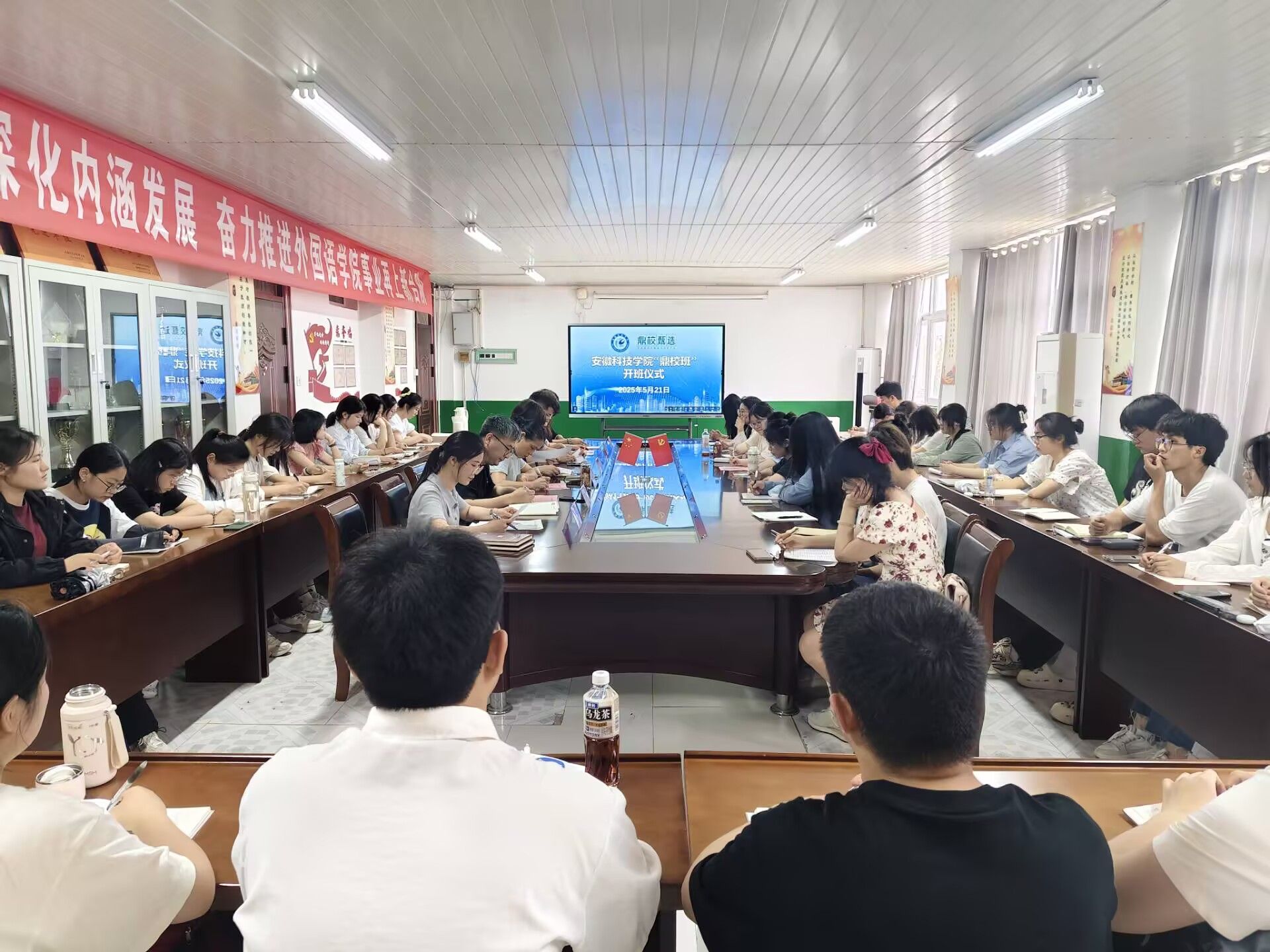 5月21日下午,博业体育(中国)官方网站-登录入口“鼎校班”开班仪式在学院会议室举行。外国语学院党政领导、安徽鼎校教育科技有限公司(以下简称“鼎校教育”)相关负责人以及“鼎校班”40名学员参与活动。开班仪式由学院党委副书记张海亮主持。