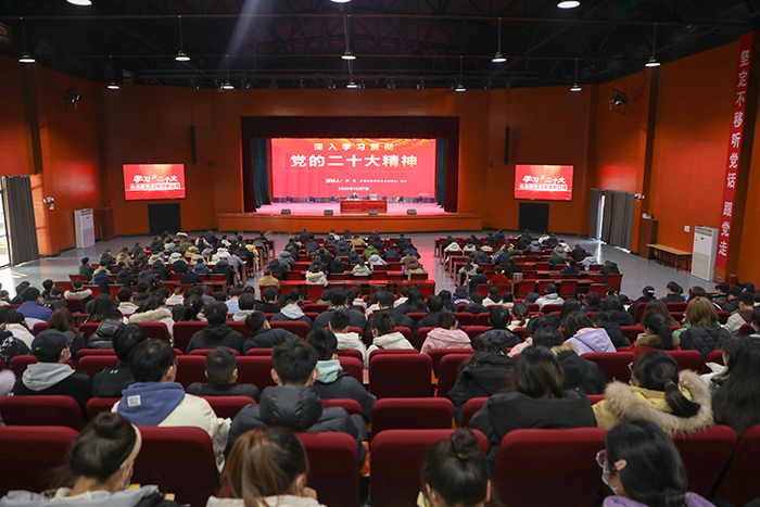 报告会上,校领导介绍了中国共产党第二十次全国代表大会召开的时代背景和大会盛况,强调要深刻领会党的二十大的重大意义、准确把握党的二十大精神实质、迅速兴起学习宣传贯彻党的二十大精神的热潮。重点围绕“关于党的二十大的主题”“关于过去5年的工作和新时代10年的伟大变革”“关于马克思主义中国化时代化”“关于中国式现代化”“关于全面建设社会主义现代化国家的目标任务”“关于坚持党的全面领导和全面从严治党”“关于应对风险挑战”“关于团结奋斗的时代要求”八个方面对党的二十大精神进行了深入阐述与系统讲解。