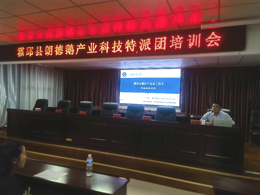 此次培训班吸引了全县从事朗德鹅养殖和加工企业负责人以及技术服务人员参会。会上,我院甄宗圆副教授以“鹅肉及鹅肝产品加工技术”为题,详细介绍了鹅肉及鹅肝产品的加工技术和市场前景。动物科学学院动任曼副教授则分享了朗德鹅养殖的关键要点和经验。