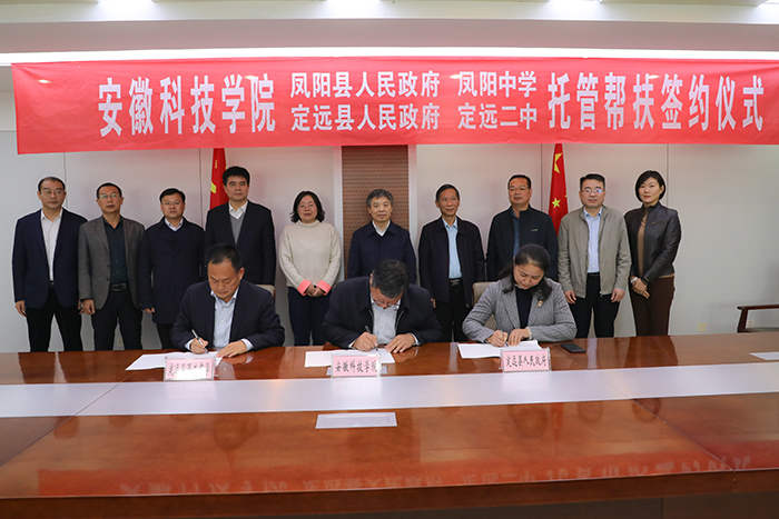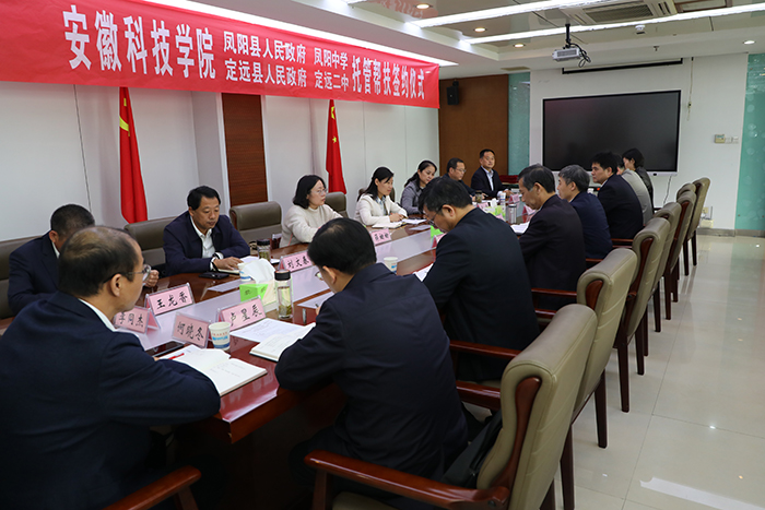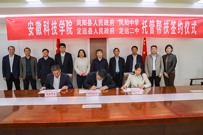 10月28日上午,博业体育(中国)官方网站-登录入口与凤阳县人民政府、定远县人民政府、凤阳中学、定远县第二中学托管帮扶签约仪式在凤阳校区图书馆十楼会议室举行。校党委书记蒋德勤,党委副书记、院长李震,党委委员、纪委书记、监察专员王强,党委委员、副院长李升和,凤阳县人民政府副县长张艳,定远县人民政府副县长许倩,滁州市、凤阳县、定远县教育体育局、凤阳中学、定远二中相关领导同志参加仪式。
