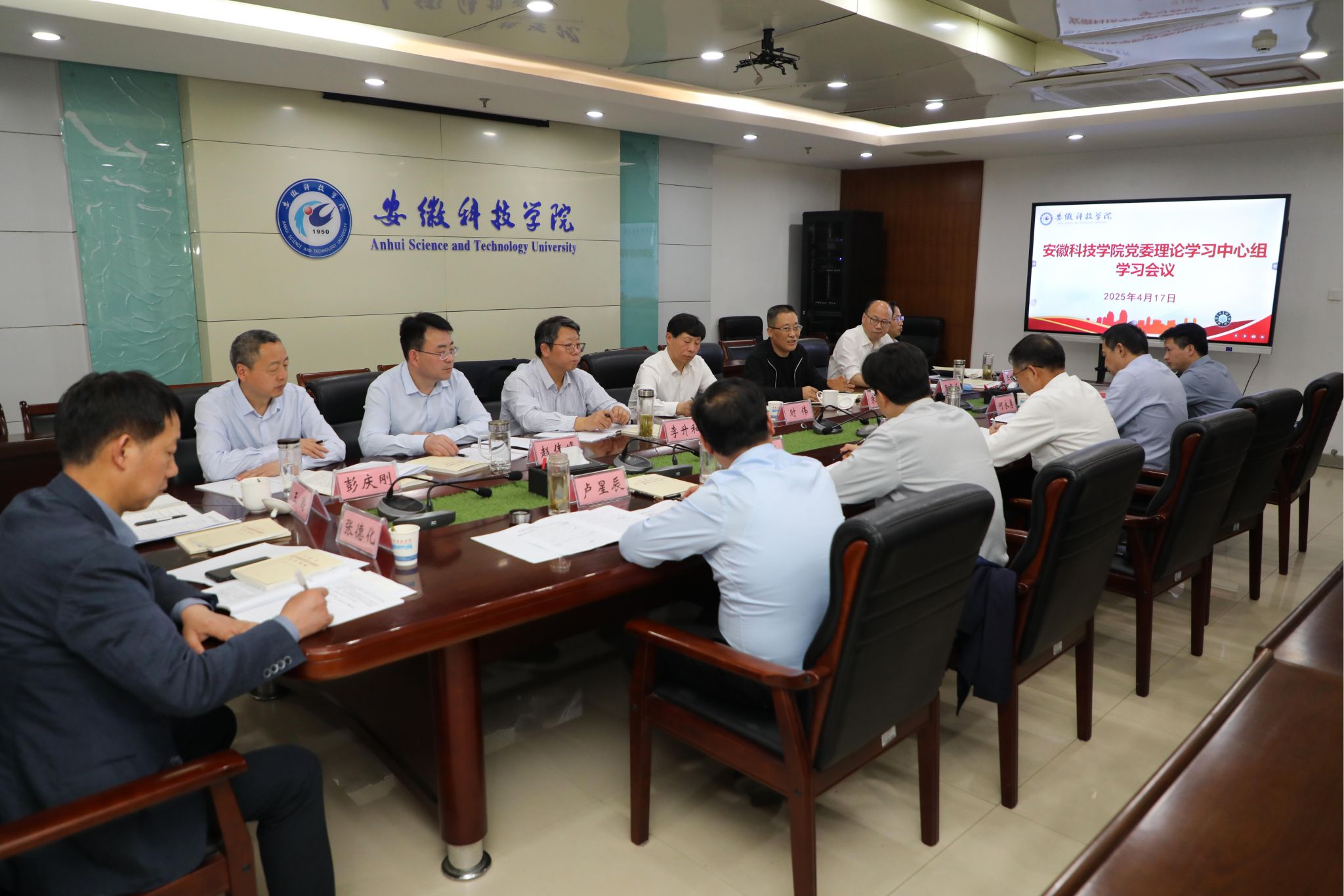4月17日下午,党委书记时伟在凤阳校区主持召开党委理论学习中心组学习会议,认真学习习近平总书记在中央周边工作会议上重要讲话精神,集中学习习近平总书记关于加强党的作风建设的重要论述,传达学习上级有关文件精神,学习观看专题教育片《周恩来的严与实》,围绕“领导干部带头转作风 身体力行 以上率下”开展专题研讨。省委教育工委组织干部处处长朱玉华,省委教育工委组织干部处一级主任科员王晗列席旁听。学校党委理论学习中心组成员参加学习会。